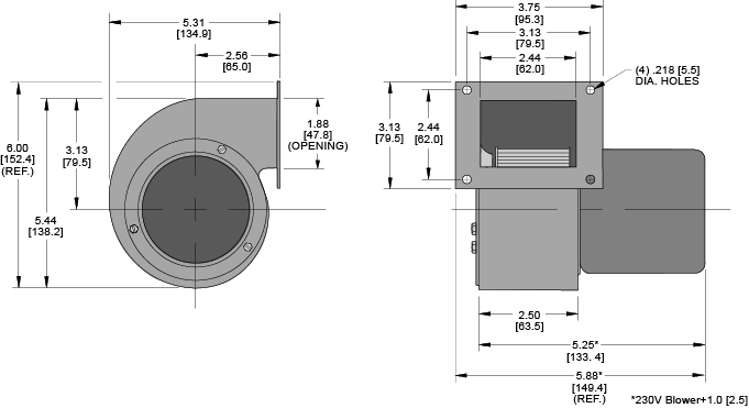 All motors, whether permanent split capacitor or shaded pole, are UL/CSA Recognized and include automatic-reset thermal overload protection. Designed for low temperature rise, Kooltronic motors are also cooled by the blowers' intake air, for maximum motor life. All motors are UL Recognized and carry a Declaration of Conformity to applicable CE Standards. Special permanent lubricants perform over a broad temperature range: -20°F (-29°C) to 250°F (121°C).