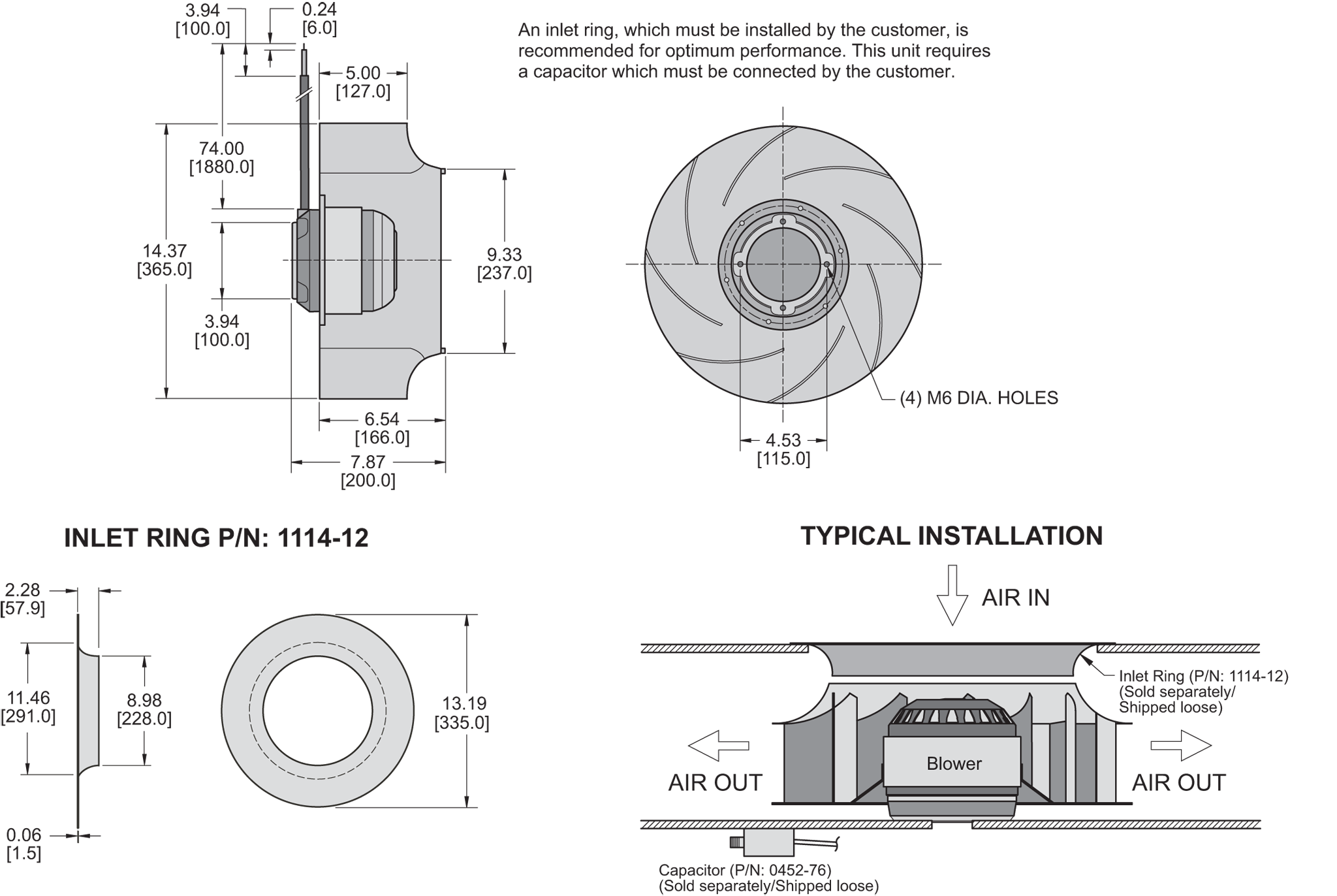 NOTE: This unit requires a capacitor for operation. Capacitors are sold separately and shipped loose for field installation by customer. Capacitor Part Number: 0452-76